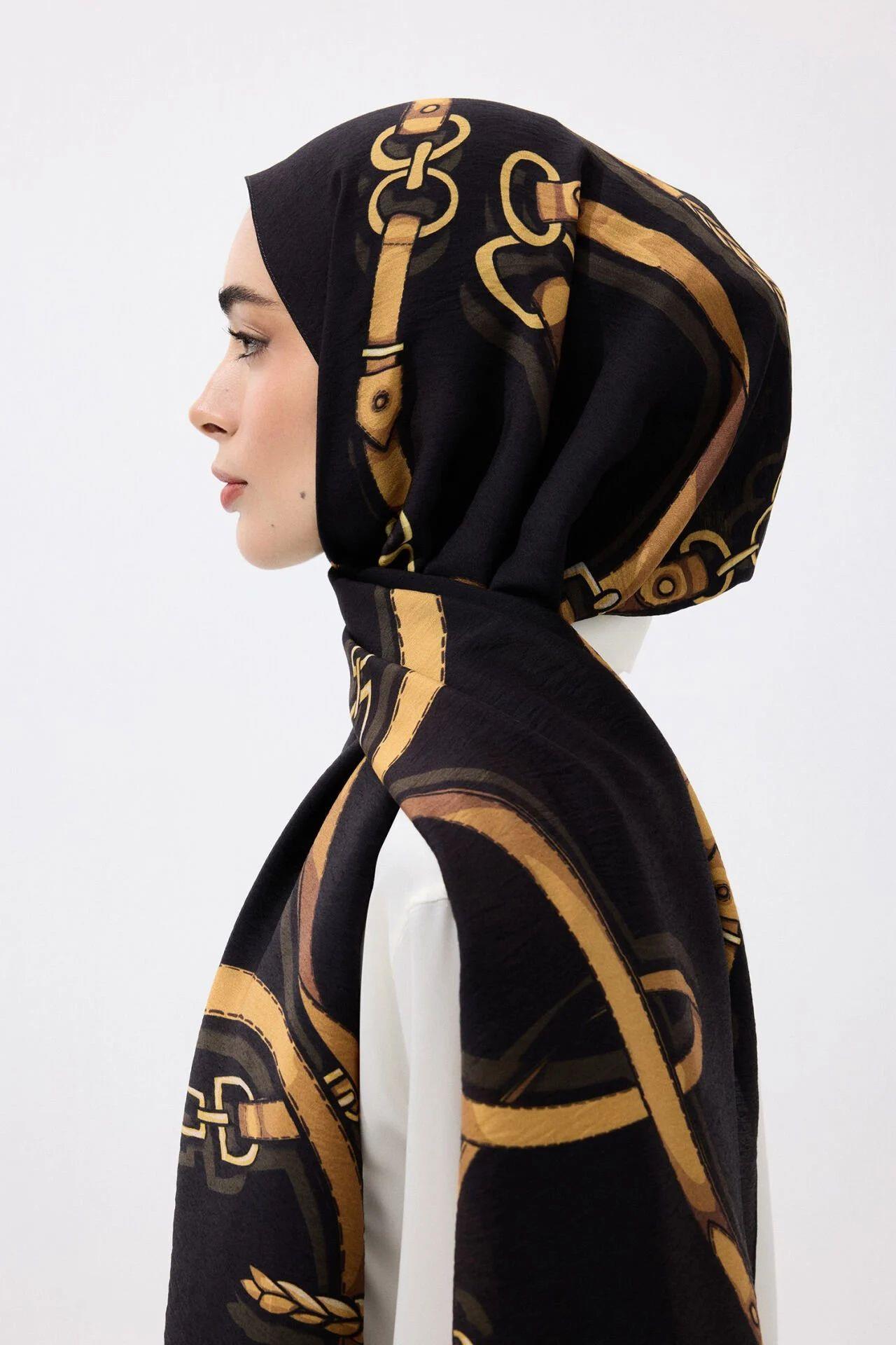 Aura Black şal, siyah zemin üzerinde öne çıkan kemer detaylarıyla sade stilin içine cesur bir karakter katıyor. Zarif dokusu ve kontrast tasarımıyla hem klasik hem modern görünümlere kolayca uyum sağlar. Gücünü sadelikten alan ama fark yaratmayı sevenler için tasarlandı.