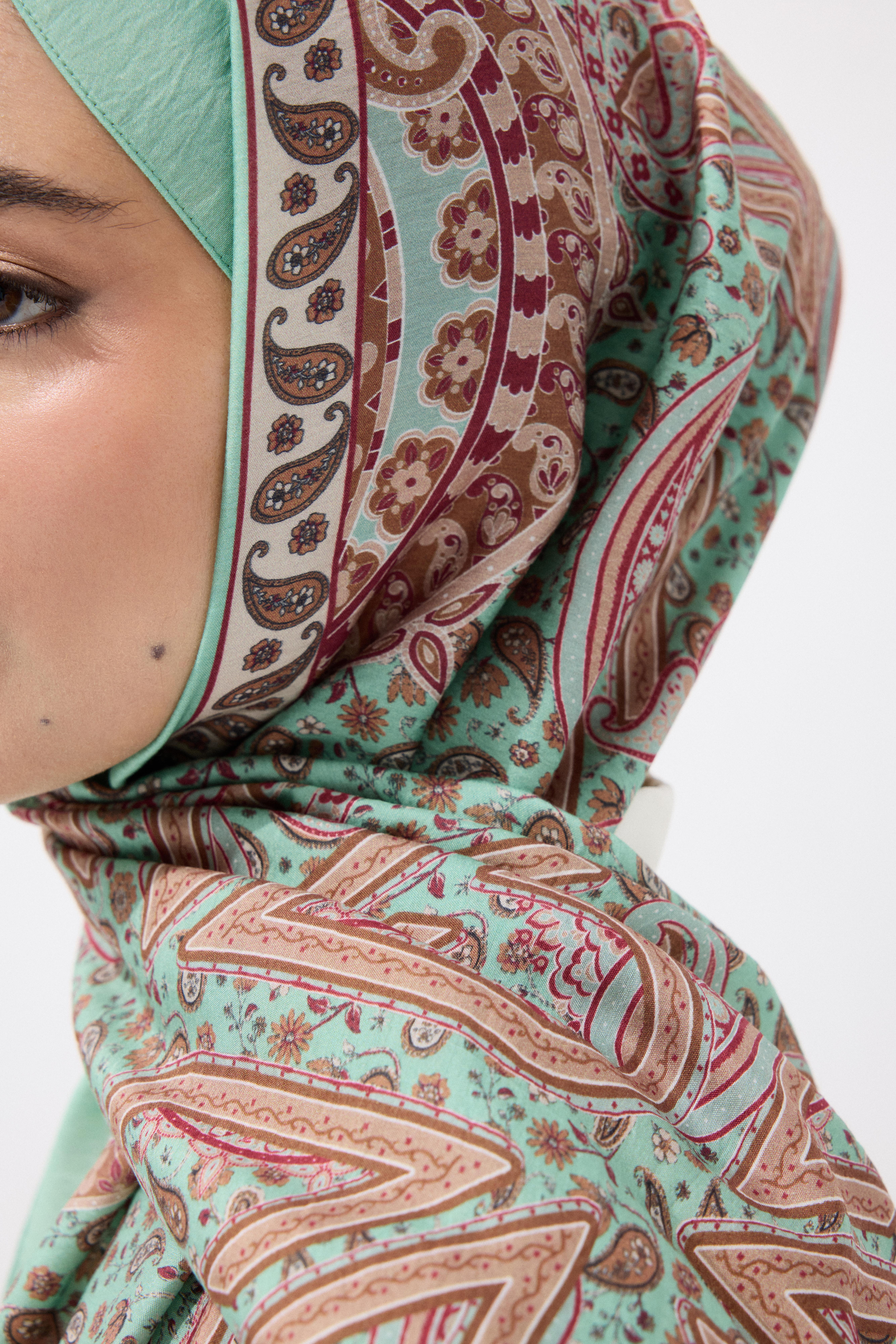 Ferahlığın rengi mint yeşili, toprağın sıcak tonlarıyla buluştu… Bu özel %80 pamuk %20 ipek şal, doğadan ilham alan renk paleti ve zarif desenleriyle sade ama çarpıcı bir görünüm sunuyor. Yumuşak dokusu ve ipeksi parlaklığı sayesinde hem konforlu hem şık. Gündüzden geceye, şehirden davetlere uyum sağlayan bu parça gardırobunuzun jokeri olmaya aday.